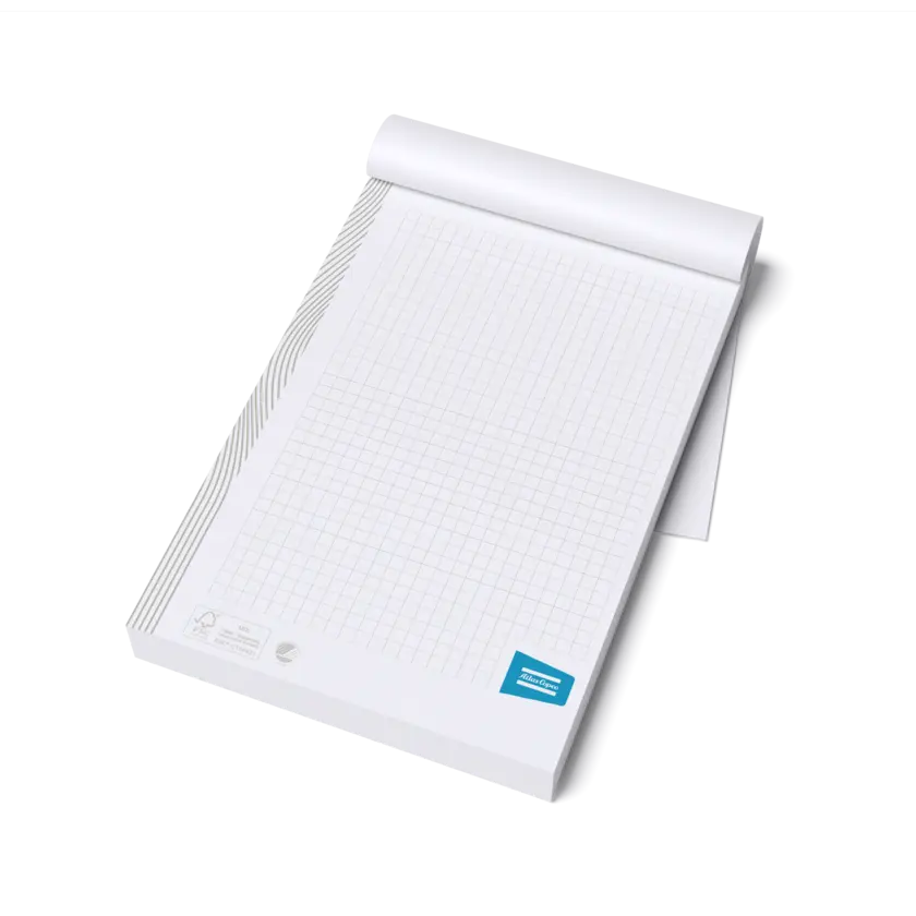 Notepad with a sturdy backside. 100 grams of white squared 25 pages. Sold in 20-packs.