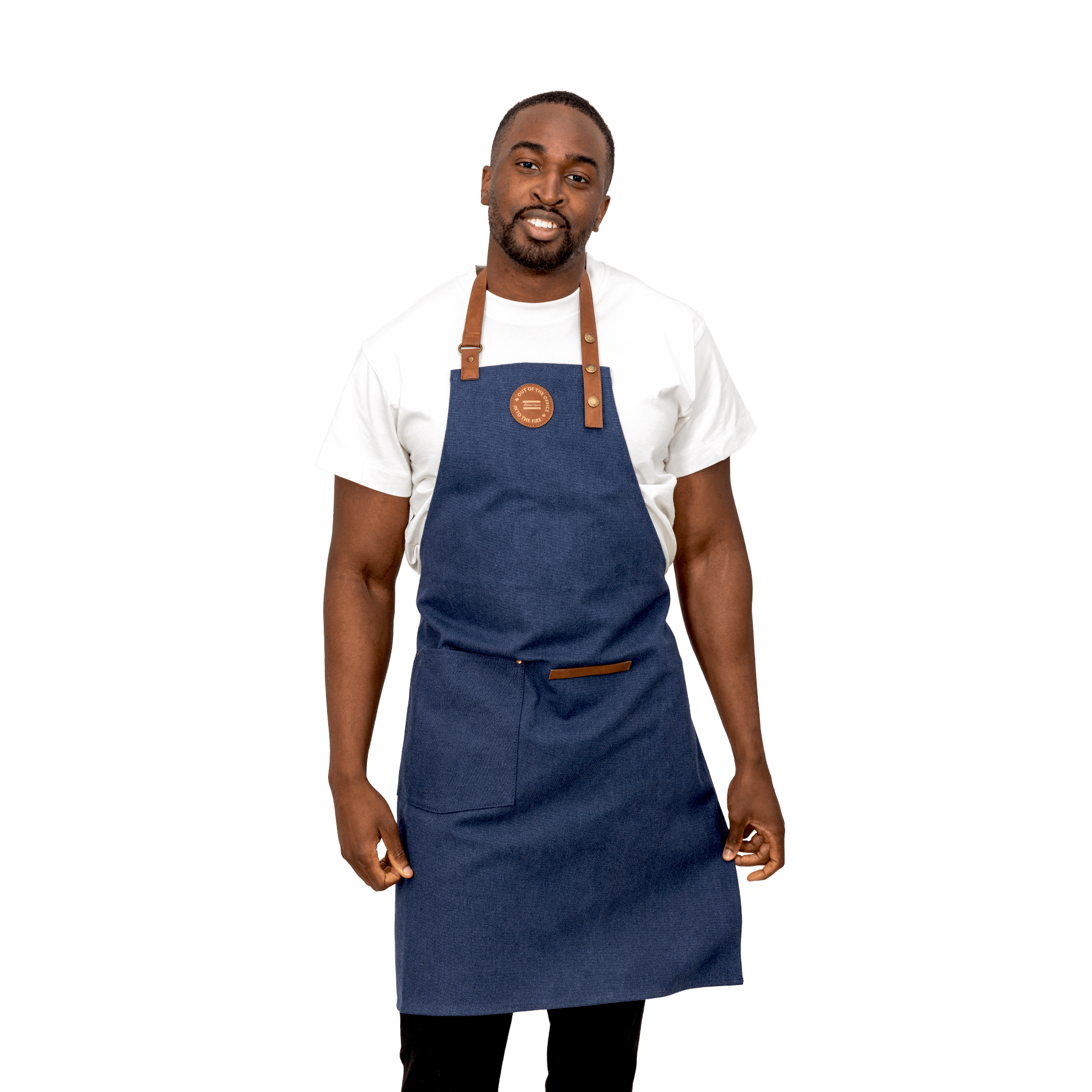 Apron made from 47% GRS certified recycled cotton and 32% GRS certified polyester. This stylish apron is a practical kitchen accessory with a wonderful design. The apron has a pocket on the front and a loop for hanging utensils or kitchen towels, so you have everything at hand when you're in the middle of cooking. The apron has a soft and adjustable neck strap for increased comfort.