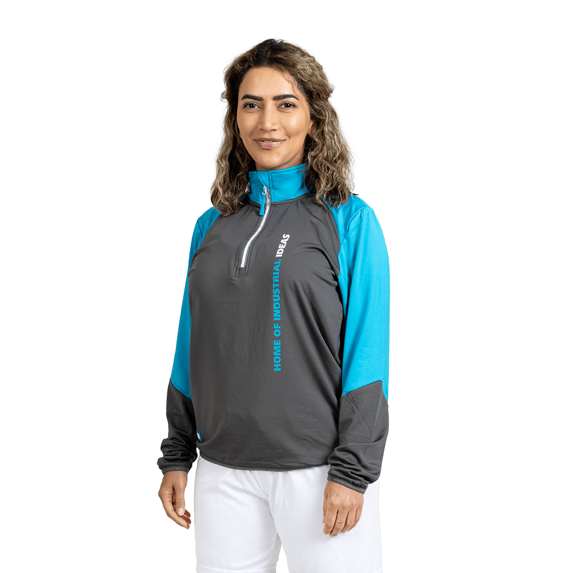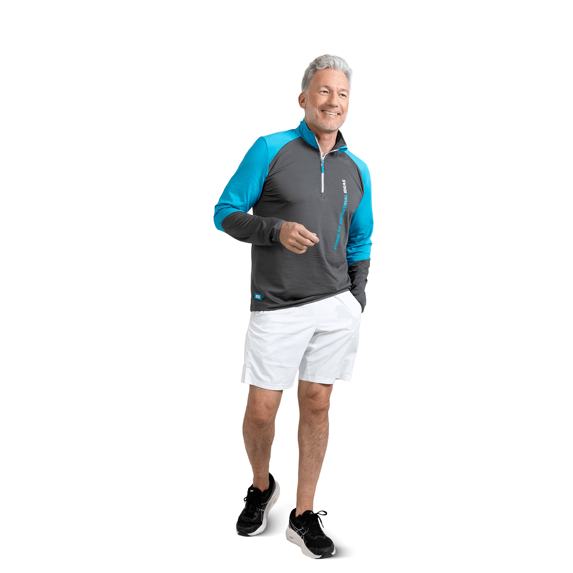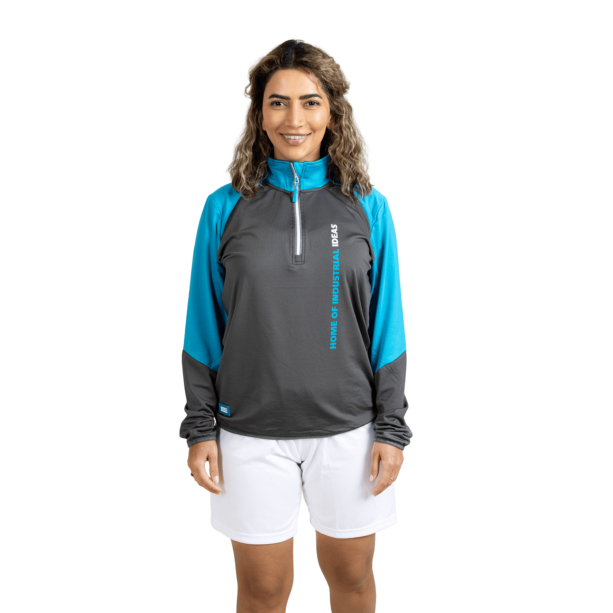 This long-sleeve activewear shirt sewn in ultrasoft, breathable material can be worn on its own or as a baselayer on cooler days. It has a standcollar and half-zip front with reflective details. A small side pocket keeps keys and coins safe.Vertical Home of Industrial Ideas-slogan at the front, small logo at the hem.
