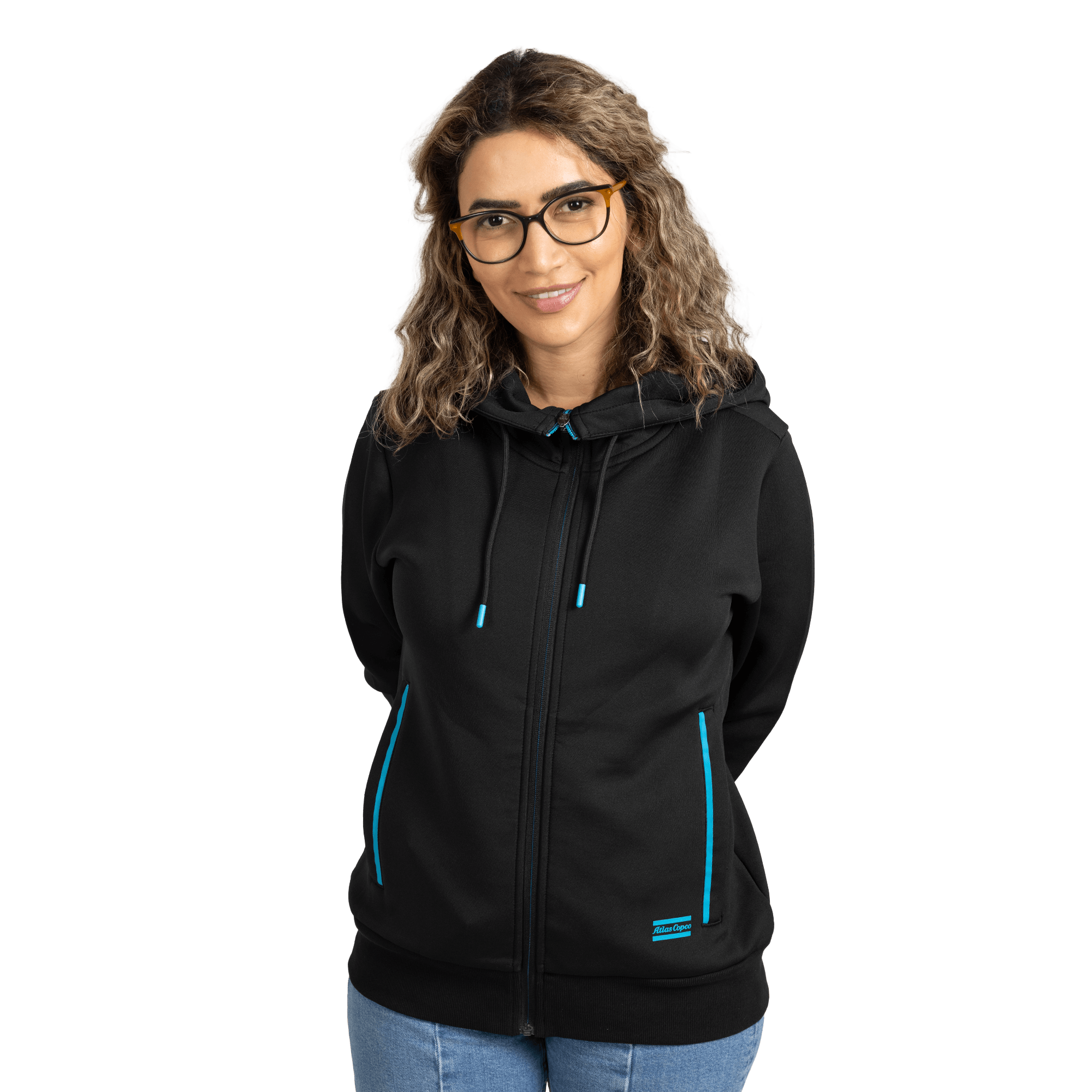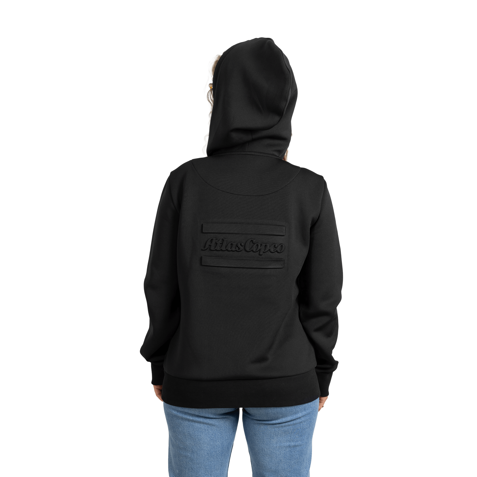 Contemporary hoodie with a full zip, featuring an exclusive design and an embossed logo on the back. Thoughtfully finished with contrast details in signature Atlas Copco blue for a distinctive and stylish look.