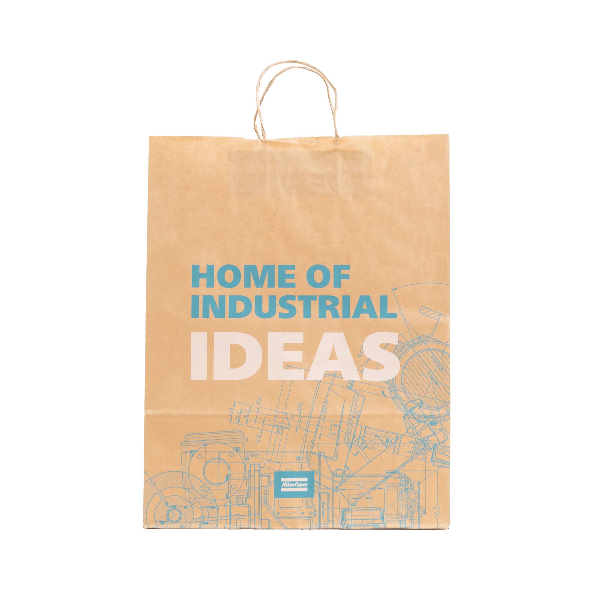 Paper gift bag with twisted handles. For each tree harvested two new are planted.