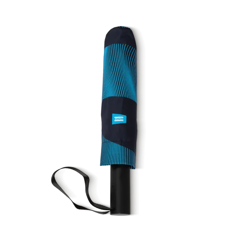 A compact, foldable umbrella made from recycled PET plastic—easy to carry, effortless to use. With automatic open/close, wrist strap, and pouch included. Built to last with a sturdy frame and high-quality feel. Reflects Atlas Copco’s values of innovation and sustainability.