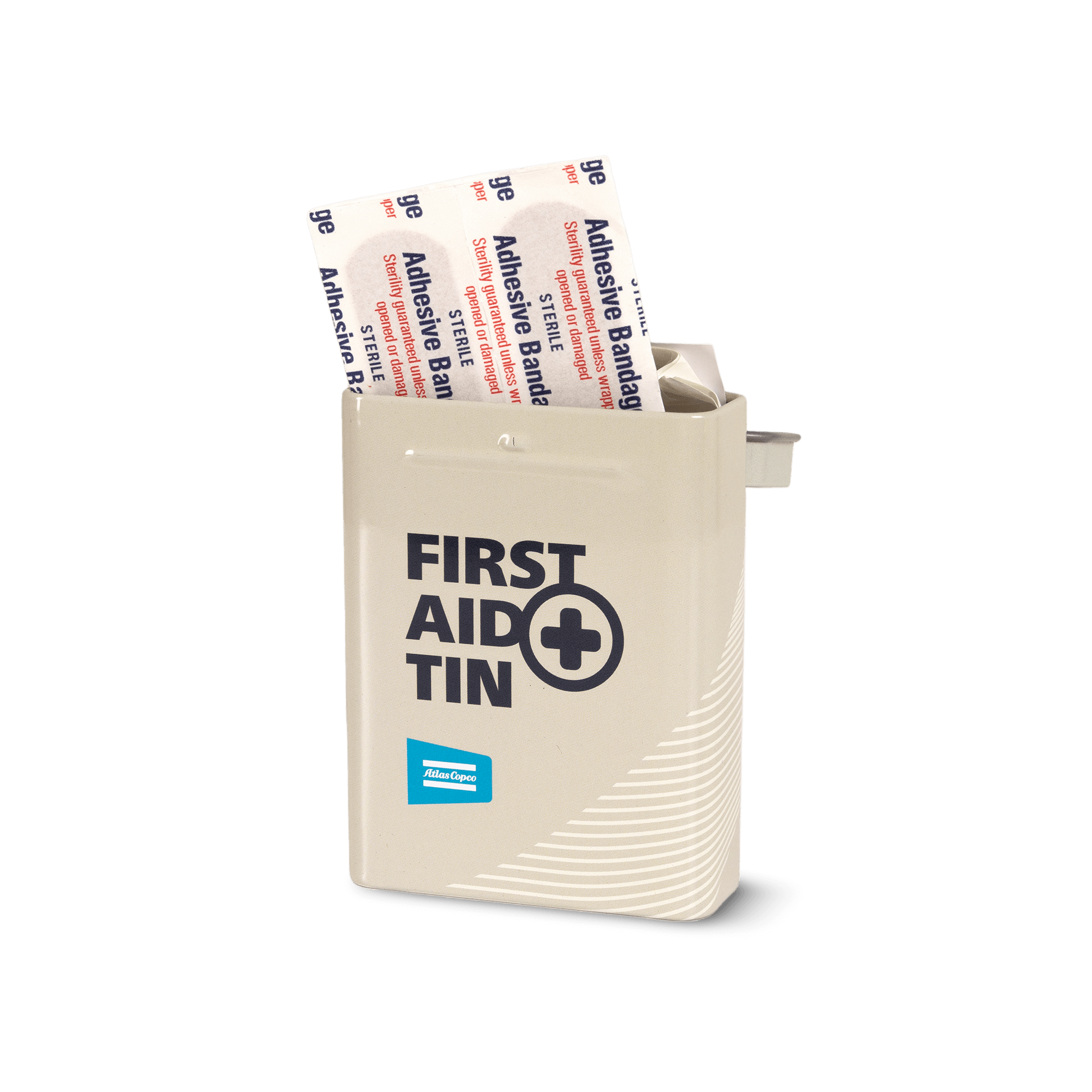 Whether it's a scrape or a cut, this practical first aid kit comes to the rescue. Packed in a durable metal tin, the set contains 20 adhesive fabric plasters in two sizes and 2 blister patches to treat minor wounds. Ideal for travelling or as a first aid supply in your car, toolbox or an office drawer. When you run out of plasters, simply refill the tin or reuse it to store other small items.
