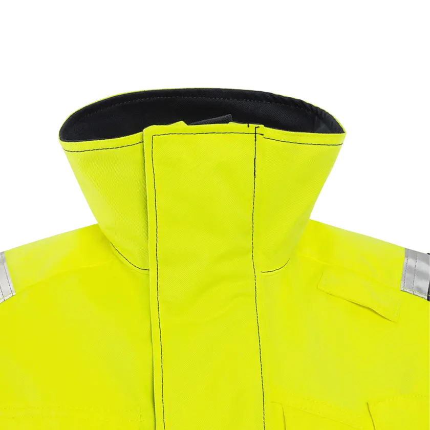 High-visibility certified jacket with inherent flame protection, specially adapted for ATEX environments with no metal details. The jacket is approved for industrial laundry and designed for durability and soft comfort. It provides certified multinorm inherent protection and features a fabric that is resistant to dirt, oil, and water, ensuring long-lasting performance in demanding conditions. Please note: This is an On Demand item, which means it is printed specifically upon order. As a result, the delivery time will be approximately two weeks longer than usual. Also, no returns due to the same reason.