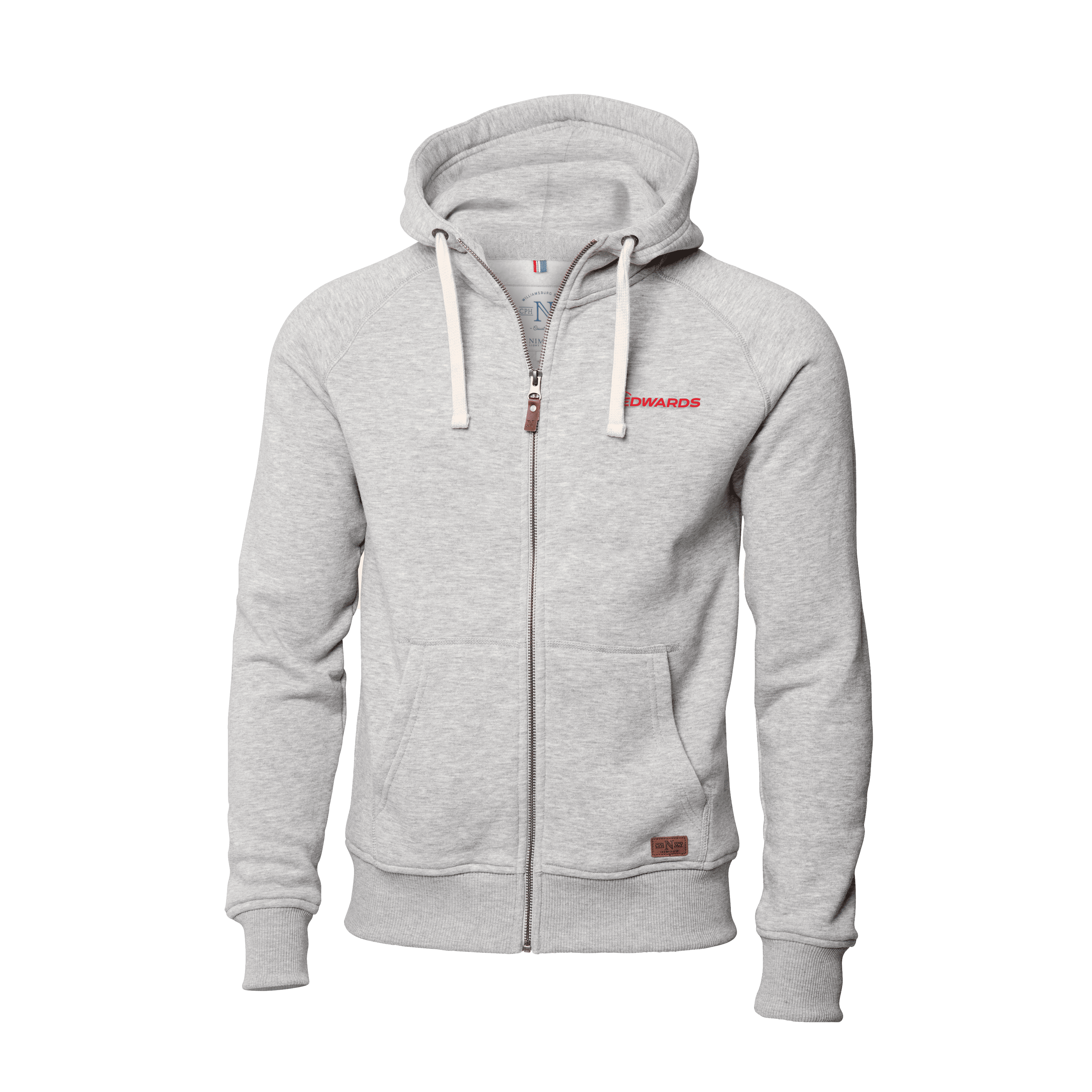This desirable modern hooded sweatshirt, in a comfy organic cotton-rich blend, is stylish enough for work and fashionable enough to wear around town. “Style” has been a key word for our design team, resulting in eye-catching parts, such as rugged drawstrings, leather details, the trendy signature neck loop and YKK zipper. The brushed fleecy lining and the short-shave treatment will make the luxurious feeling last forever.