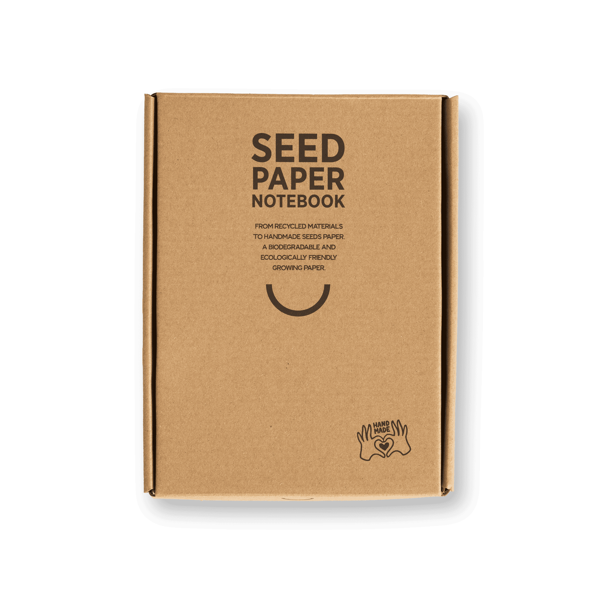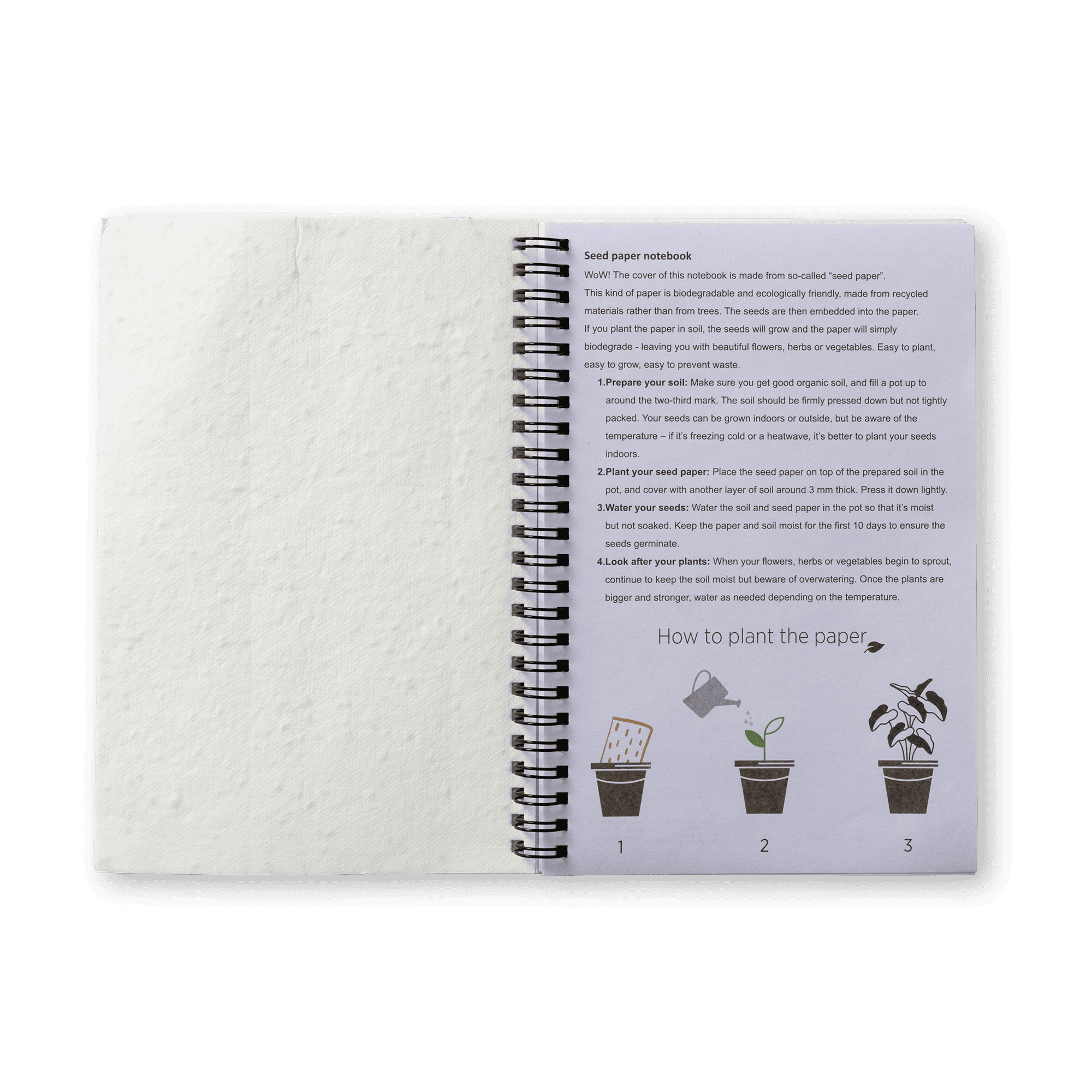 Lined notebook with the cover made of seed paper from flowers. If you plant the paper in soil, the paper disappears, the seed grow and you are left with beautiful flowers.