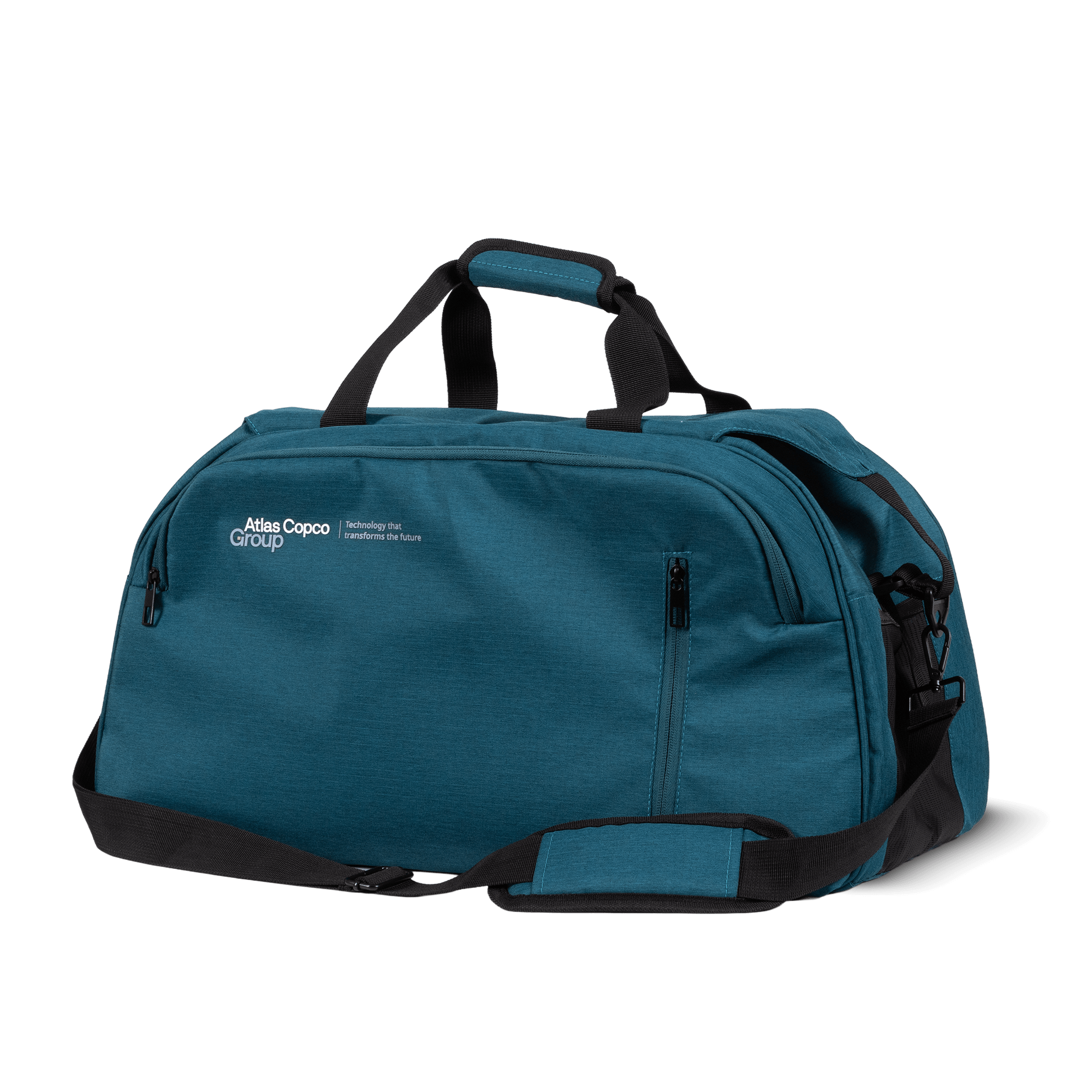 This stylish Team bag, exclusively designed for Atlas Copco Group, is equipped with a large main compartment, a front compartment, side pockets to hold phones or water bottles, and a padded shoulder strap. Made from recycled PET-bottles turned into extra colorfast yarn woven into ripstop quality.