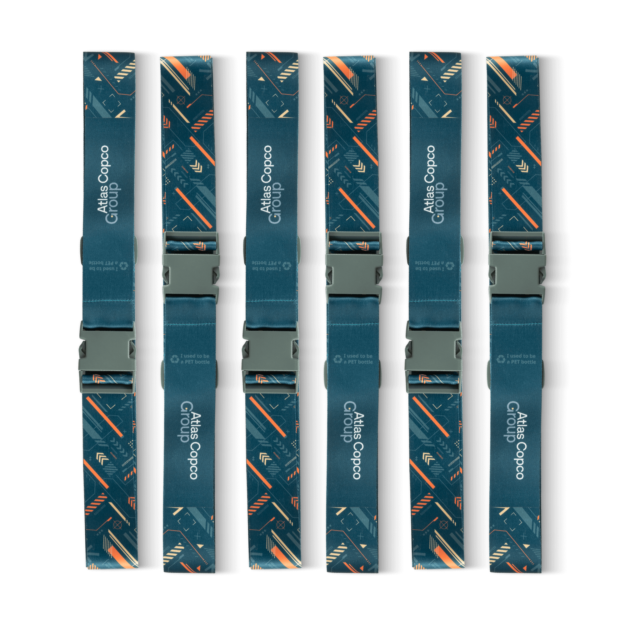 A durable luggage strap made from recycled PET-bottles to secure your bags during travel and handling. It features a colorful all-over print and is equipped with sturdy plastic fastenings. Measures 170 x 5 cm, adjustable to fit your bag. Comes in a paper package.